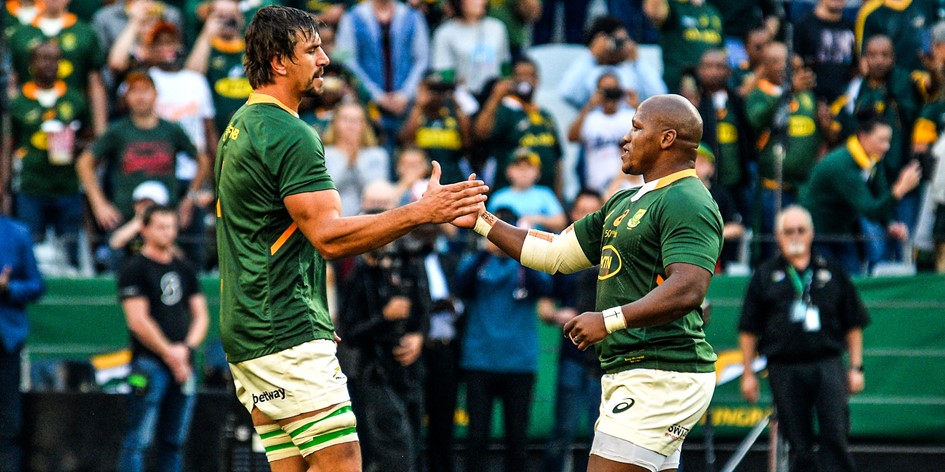 Eben Etzebeth and Bongi Mbonambi were delighted to celebrate their special Springbok career milestones with a Castle Lager Incoming Series victory against Wales at DHL Stadium in Cape Town on Saturday and said they were proud as individuals, as well as for the team and the country.