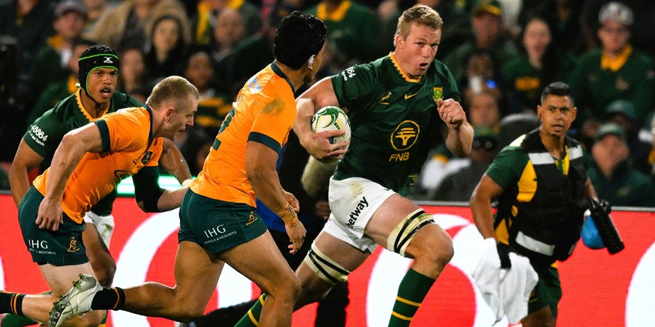 The Boks secured the restart through Lood de Jager; the box kick from the ruck was lost forward by Aussie full-back Tom Wright and the Boks recycled possession through multiple phases first right and then left for the wing to trot over untouched.